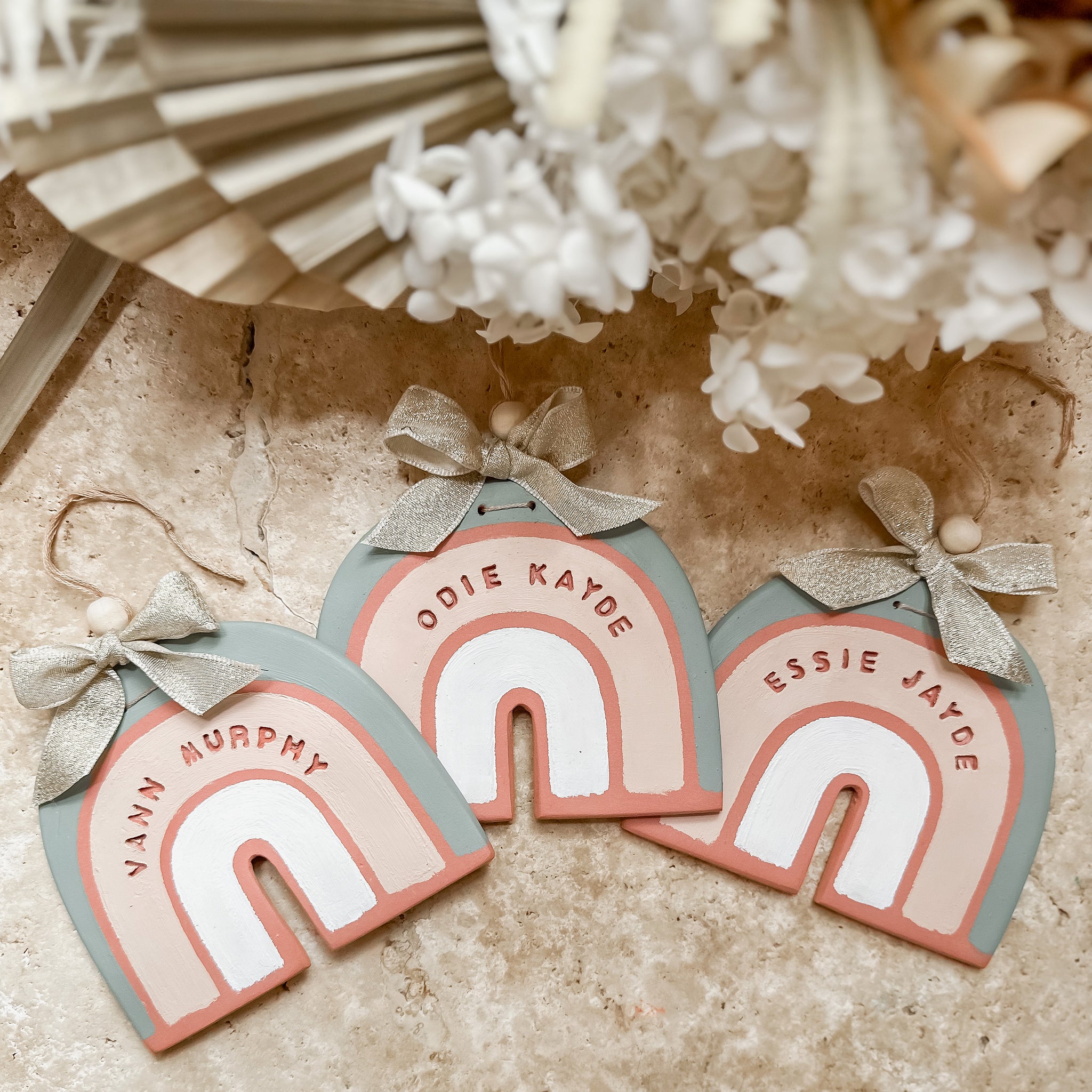 Each Personalised Terracotta Rainbow has been carefully handmade and painted making each piece individual, with its own uniqueness and charm.